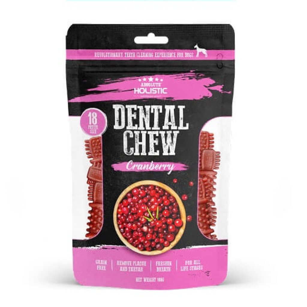 Absolute holistic dental chew are uniquely shaped to act like a toothbrush to effectively scrape plaque and tartar. They are designed with 360° nubs and ridges with hollow spaces between for better grip to clean teeth right down to the gum line while satisfying the canine instinct to chew.