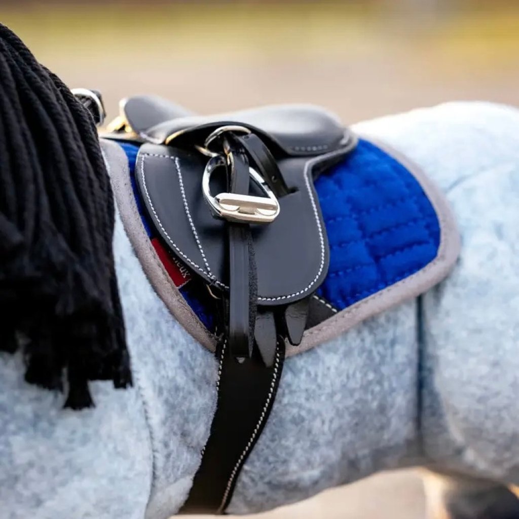 Shaped to fit Toy Pony jump saddles, crafted in our best-selling bold Benetton blue with a contrast grey binding.
