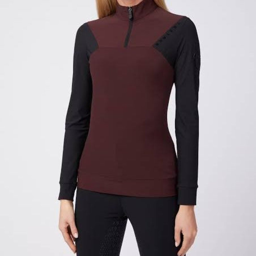 Made of technical fabric, this women’s training shirt combines performance and essential style. The high neck with half-length zip offers practicality and comfort, easily adapting to different moments of physical activity. The garment is embellished with the Vestrum logo, placed on the left side of the shoulder, which recalls the brand’s identity.