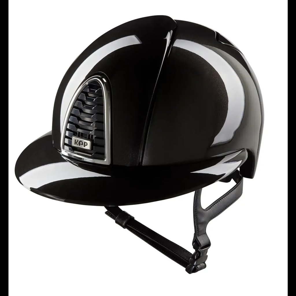 Designed and crafted entirely in Italy, Cromo 2.0 brings together innovation, safety and style. The polycarbonate shell with in-moulding construction ensures comfort and protection while maintaining a clean, durable look.One of its key features is its versatility: thanks to the interlocking system, the front and rear panels and the visor can be replaced independently, even after purchase. The KEP AIR CONTROL SYSTEM ensures continuous ventilation; the rear openings improve breathability and help maintain a stable internal temperature.The chinstrap, handcrafted and secured at five points, provides a firm and comfortable fit. The eco-friendly padding is breathable, soft against the skin, removable and washable at 30°. The aeration grid comes in a range of finishes, either tone-on-tone or contrasting, to match the rider’s style.The integrated microchip, used together with the KEP App, allows you to upload health information useful in case of first aid. A jockey-style visor is included with the helmet.Cromo 2.0 weighs 500 g in size M and 535 g in size L, and can be personalised with freehand airbrushing or other artistic techniques to create a truly unique piece.